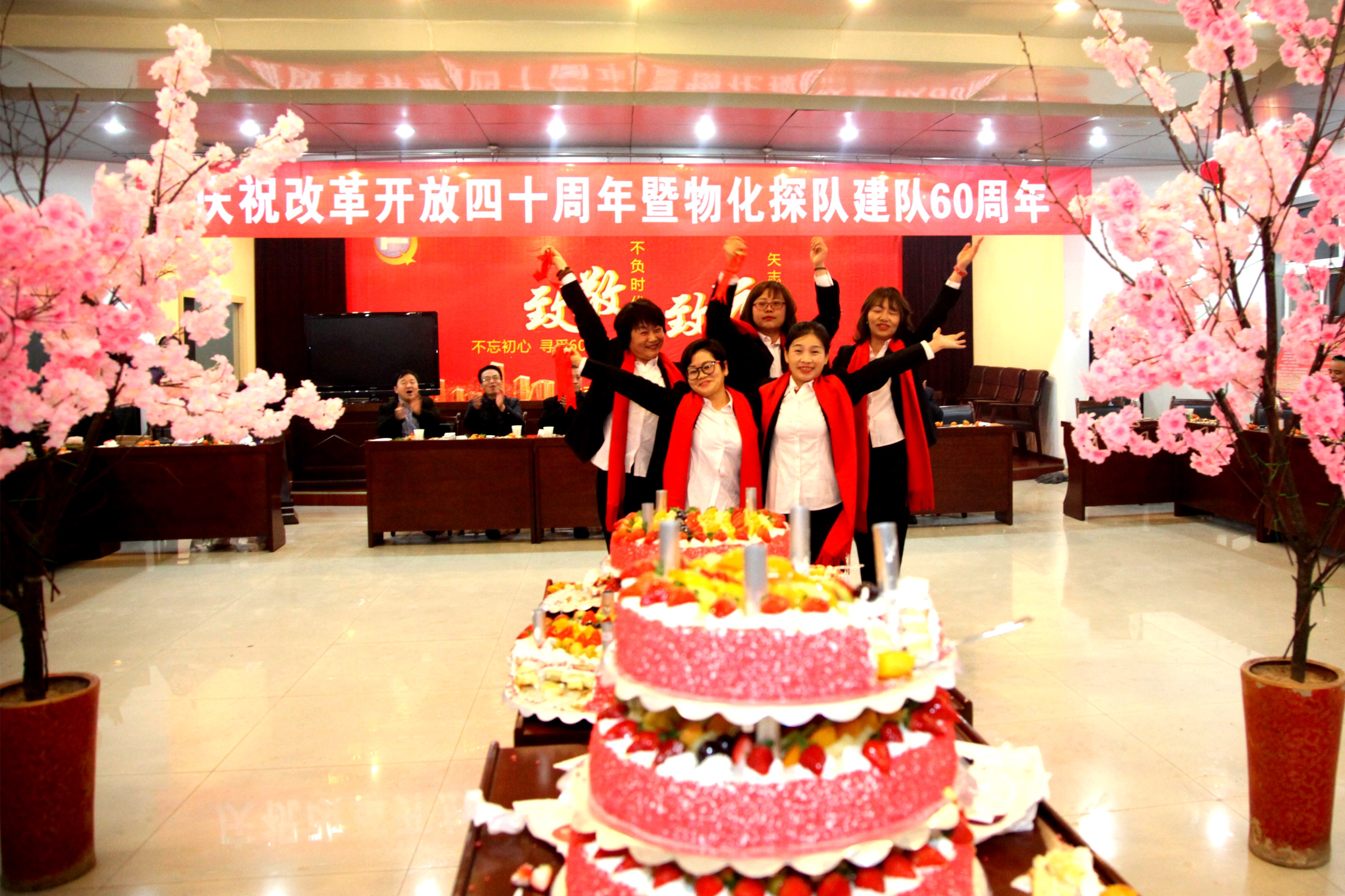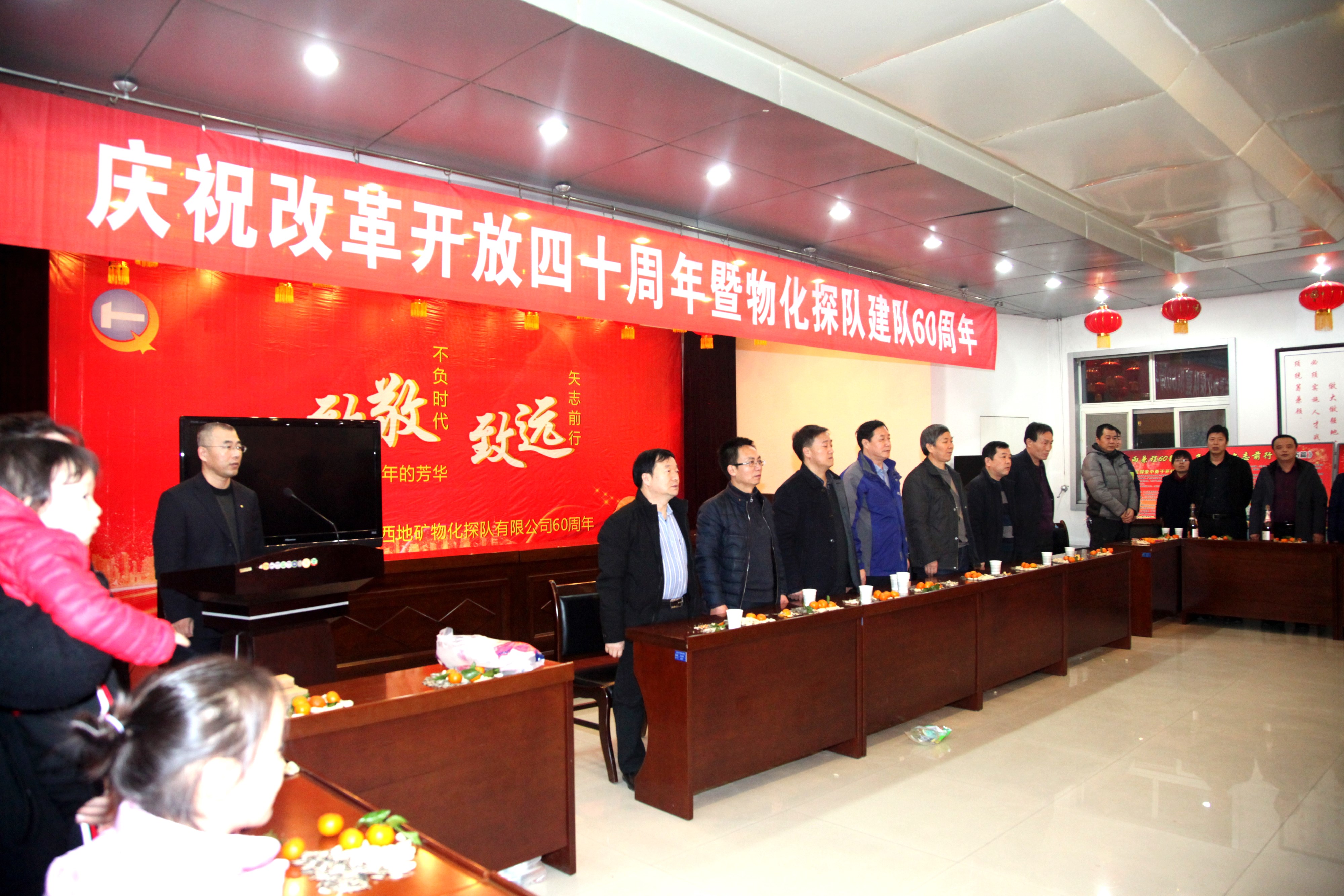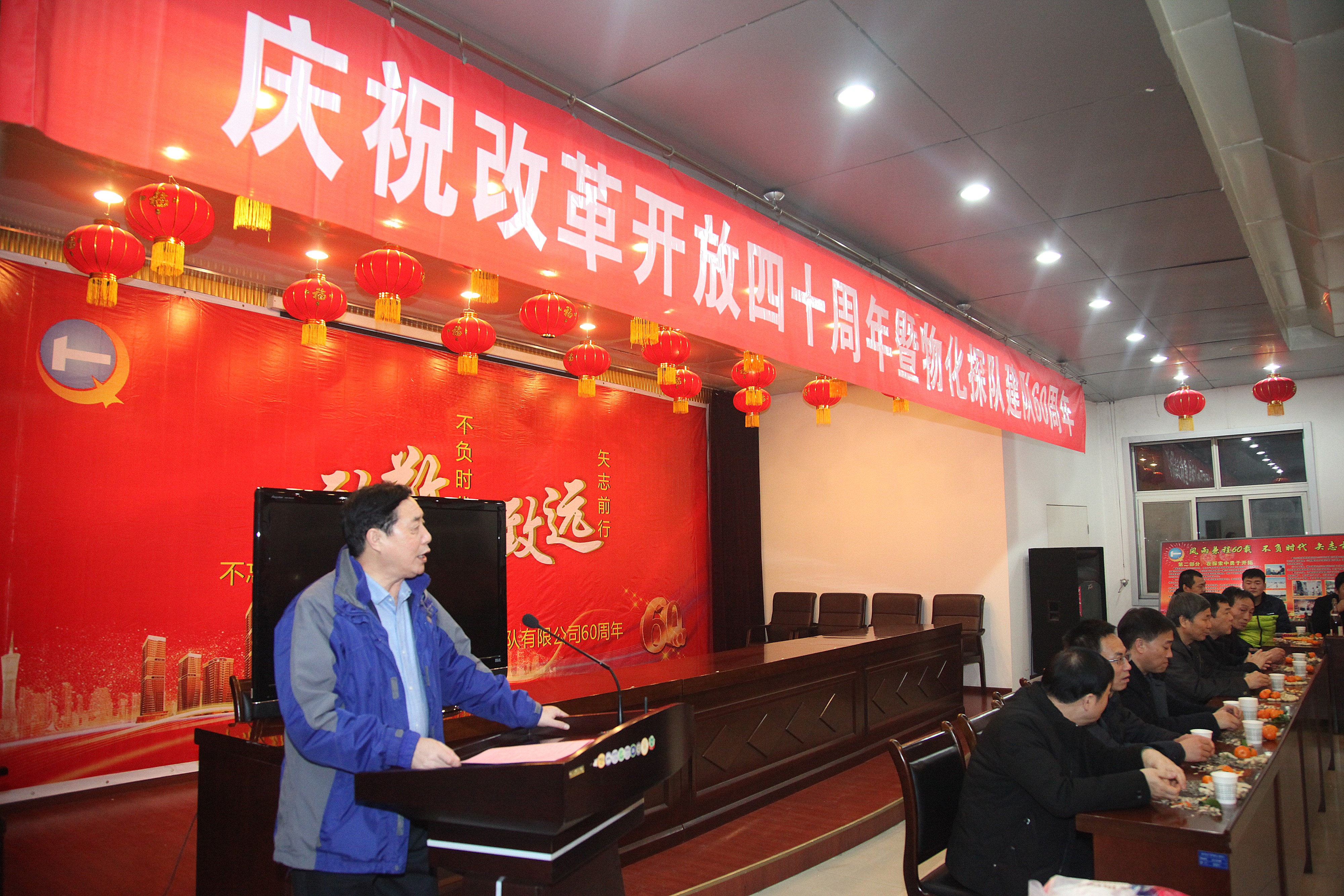 ? ? 古稀朝枚俱耐冷,仲冬如春放歌聲。12月26日物化探隊全體干部職工歡聚一堂,共同慶祝改革開放40周年暨物化探隊成立60周年。公司黨委書記,執(zhí)行董事、總經(jīng)理王新坪在活動中發(fā)表了熱情洋溢的致辭,黨委副書記、紀(jì)委書記李新勝同志主持活動。