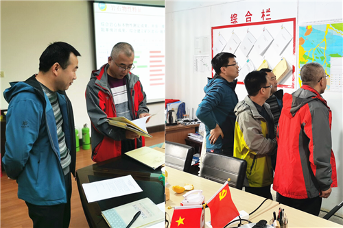 ??? 檢查組一行檢查工作的同時,正逢專家組對項目進行野外驗收,李新勝、劉建利在陪同專家組對該項目野外驗收后,檢查了項目安全生產和基層黨建等工作,審閱了項目野外工作總結及原始資料,聽取了項目野外工作匯報,實地檢查了大功率多場源張量可控源音頻大地電磁測深發(fā)射源布設情況,抽查了部分實際測點。