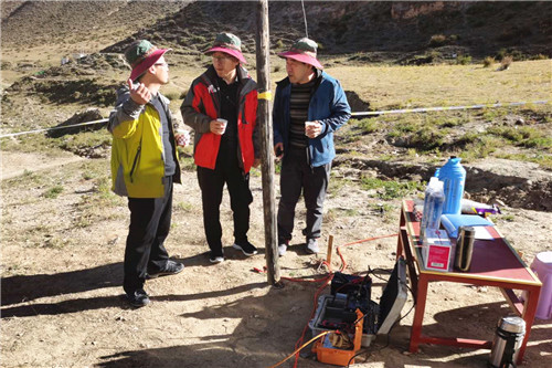 ??? “岡底斯構造帶關鍵地區(qū)深部地質調查”項目是物化探隊地調所三部承擔的中國地質科學院地調項目,地處西藏墨竹工卡縣甲瑪-驅龍礦集區(qū),工區(qū)海拔4600-5400m。項目主要工作方法包括大功率多場源張量可控源音頻大地電磁測深和大地電磁測深。為了充分發(fā)揮黨建優(yōu)勢,攻克高原深部探測前沿技術,物化探隊聯合中國地質科學院成立了臨時黨支部,做到了黨建工作與生產經營工作深度融合。