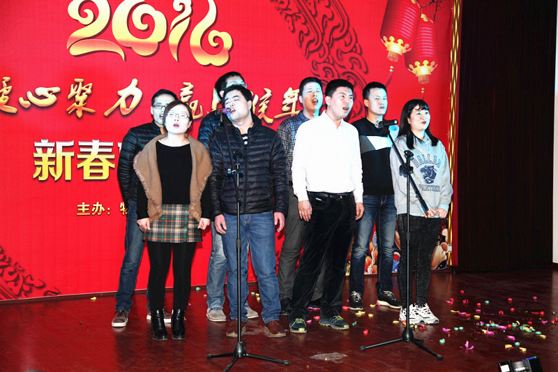 ??? 揮手告別2015年艱苦奮斗的歷程,共同放飛2016年無限的暢想。2月1日晚,物化探隊舉辦了以“凝心聚力 攻堅克難 贏戰2106”為主題的“迎新春”職工聯歡晚會。地礦總公司黨委委員、副總經理、工會主席白林科、地礦總公司工會常務副主席張漢軍出席晚會并講話,隊長王新坪、黨委書記賀志銀及班子其他成員、晚會演出人員、在隊職工及部分家共計100余人歡聚一堂,共迎新春佳節。