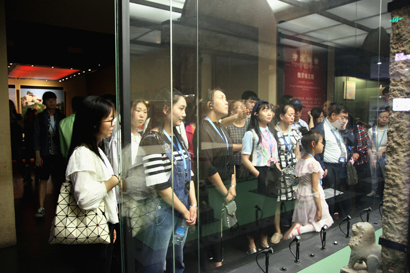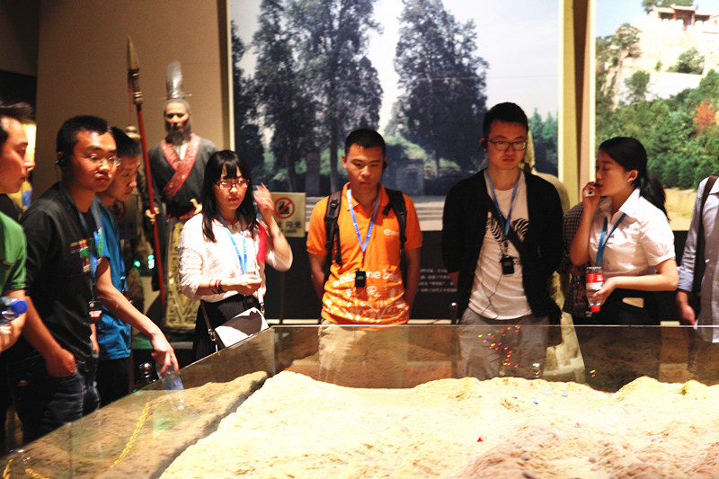? ? 被譽為“古都明珠,華夏寶庫”的陜西歷史博物館分三個展廳,分別從人類起源、西周王都、大秦帝國、大漢雄風、盛唐文化等歷史發(fā)展的順序?qū)Ξ敃r各個時期的建筑構(gòu)件、生活情境,文化背景以壁畫、遺址模型、文物的陳列、照片等進行再現(xiàn),團員青年們通過參觀以及講解員詳實生動的講解進一步了解了陜西悠久的古代歷史和文化。