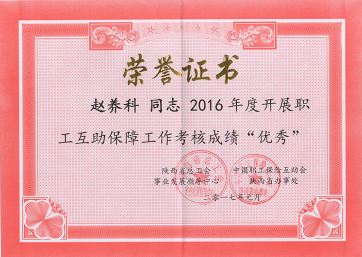? ?2017年1月13日,在陜西省職工互助保障工作會議上,對2016年度在陜西省職工互助保障工作中成績突出的先進單位和優(yōu)秀個人進行了表彰,我隊工會被陜西省總工會事業(yè)發(fā)展指導(dǎo)中心和中國職工保險互助會陜西省辦事處聯(lián)合授予“先進集體”榮譽稱號,授予工會主席趙養(yǎng)科同志“優(yōu)秀個人”榮譽稱號。