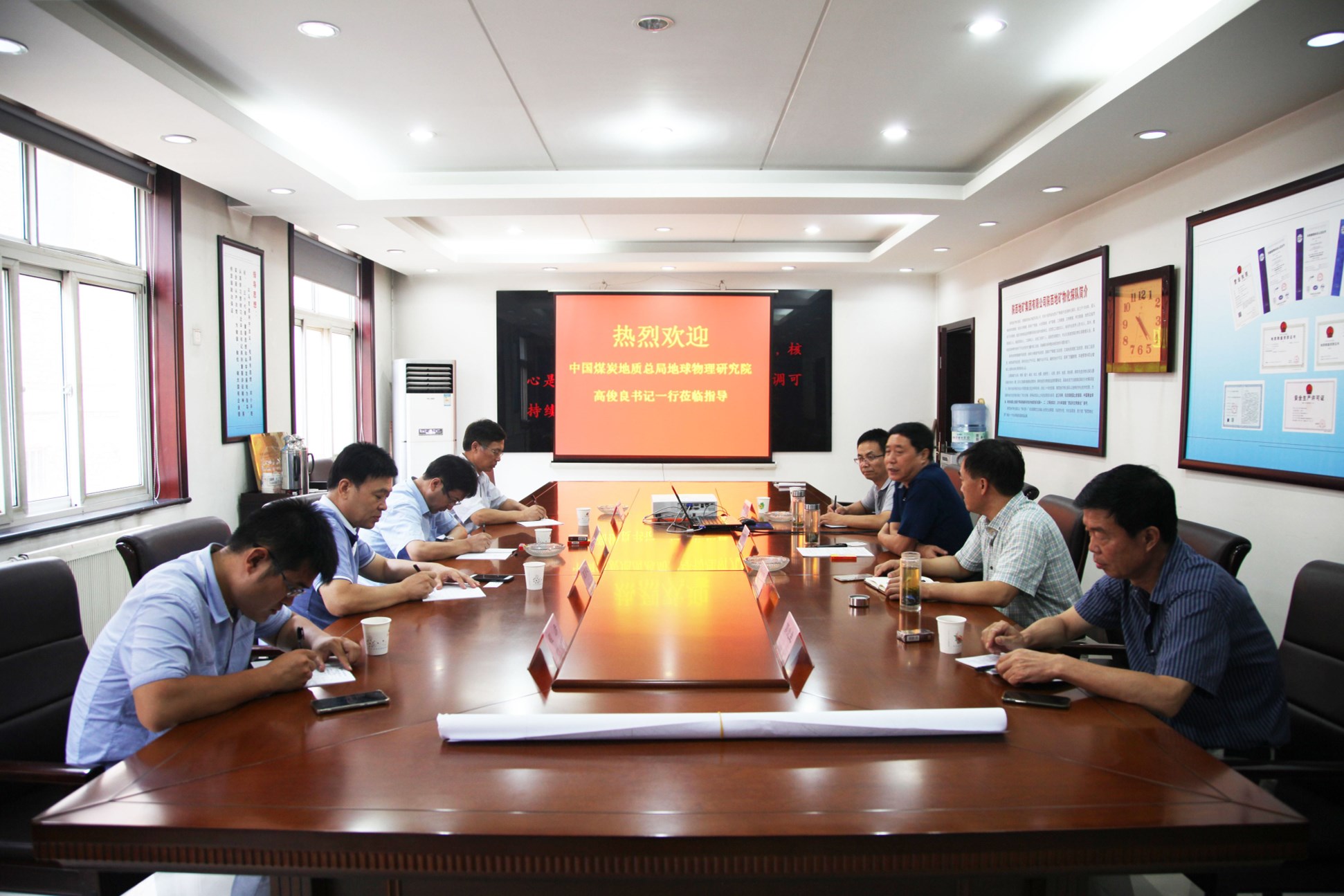 ? ? 8月1日,中國煤田地質(zhì)總局地球物理研究院黨委書記高俊良一行4人來物化探隊進行考察調(diào)研與交流。物化探隊領(lǐng)導(dǎo)王新坪、余常忠、劉建利參加座談交流。