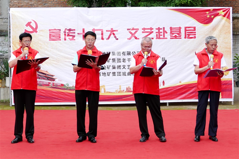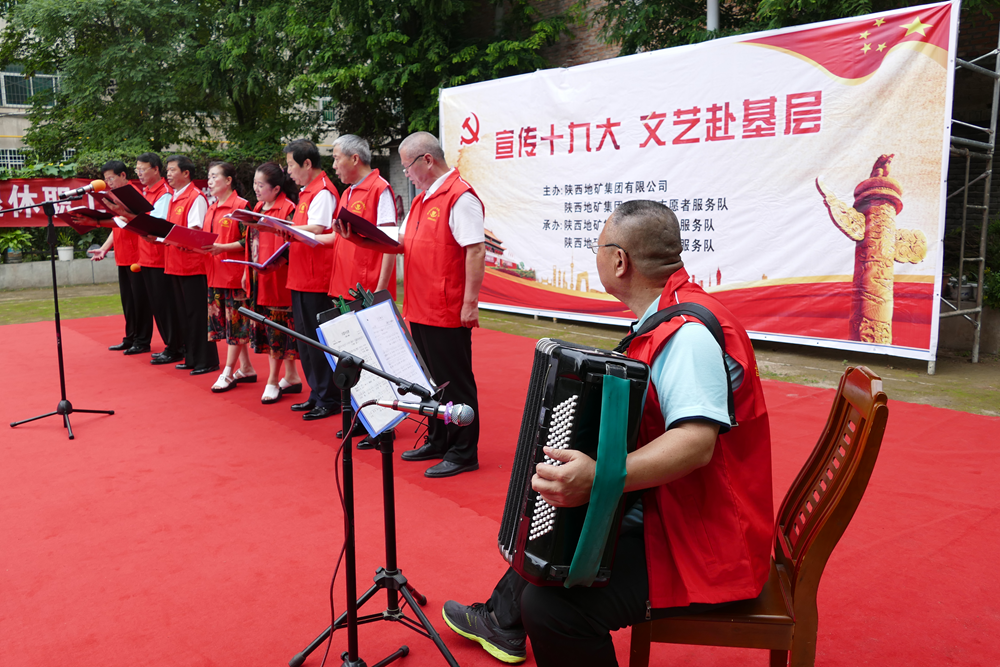 ? ? 7月17日上午,陜西地礦集團文藝小分隊“宣傳十九大,文藝赴基層”主題活動首場演出在物化探隊周至管理處上演。集團公司離退休管理中心主任李崇勇、副主任張寧,隊黨委書記、執行董事、總經理王新坪,黨委副書記、紀委書記、工會主席趙養科出席了演出活動,并與廣大離退休黨員干部職工一同觀看了演出。